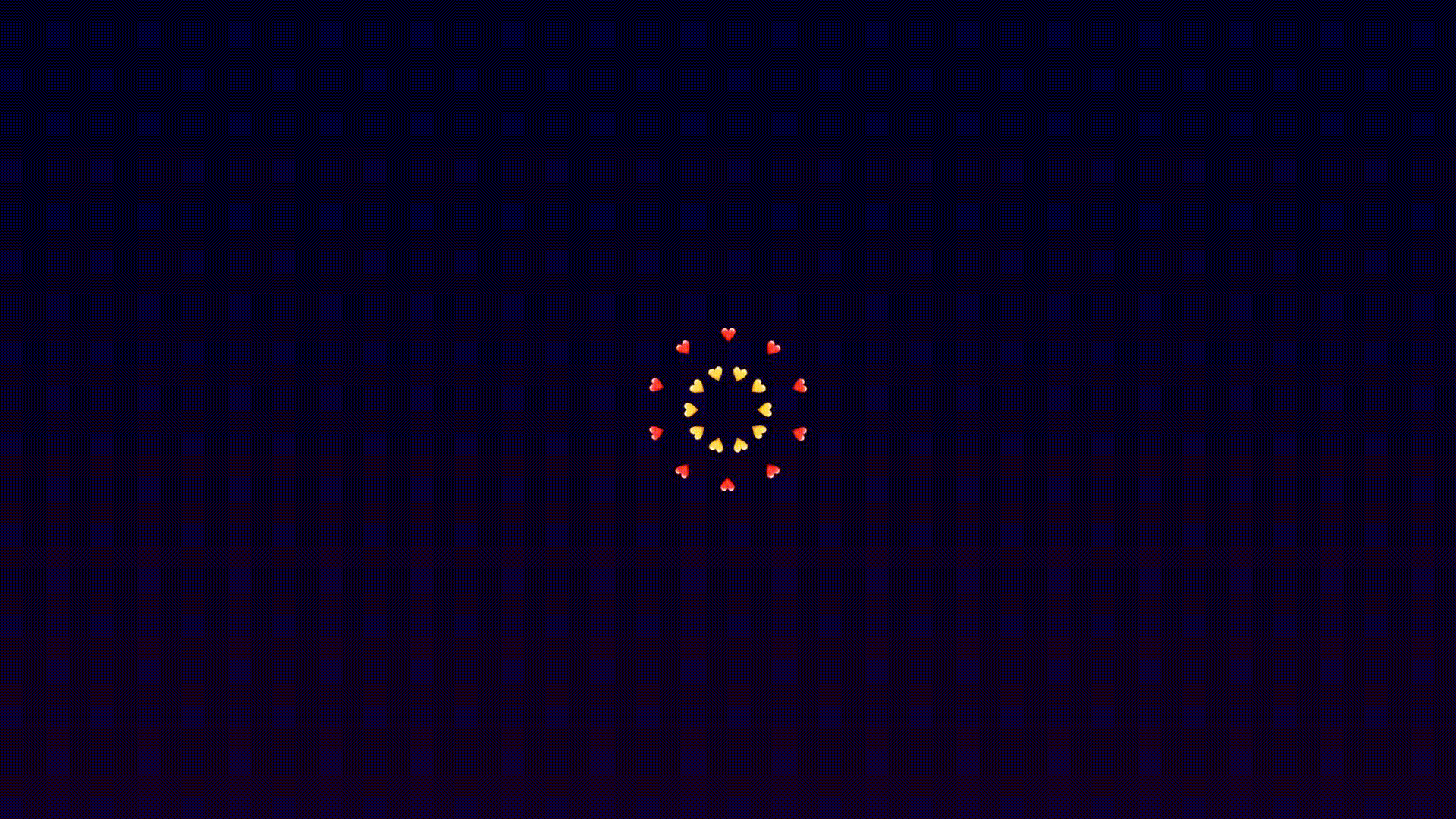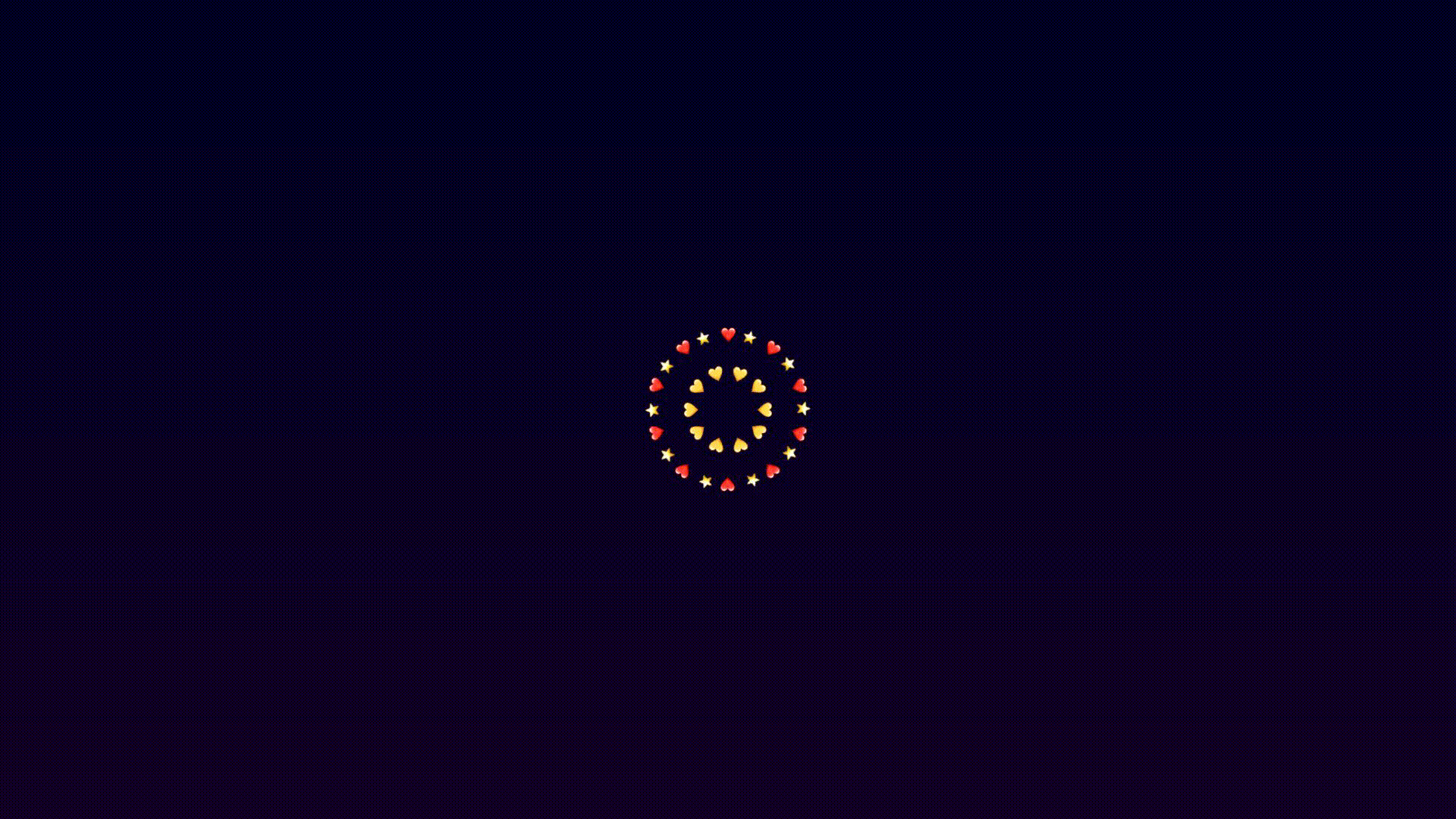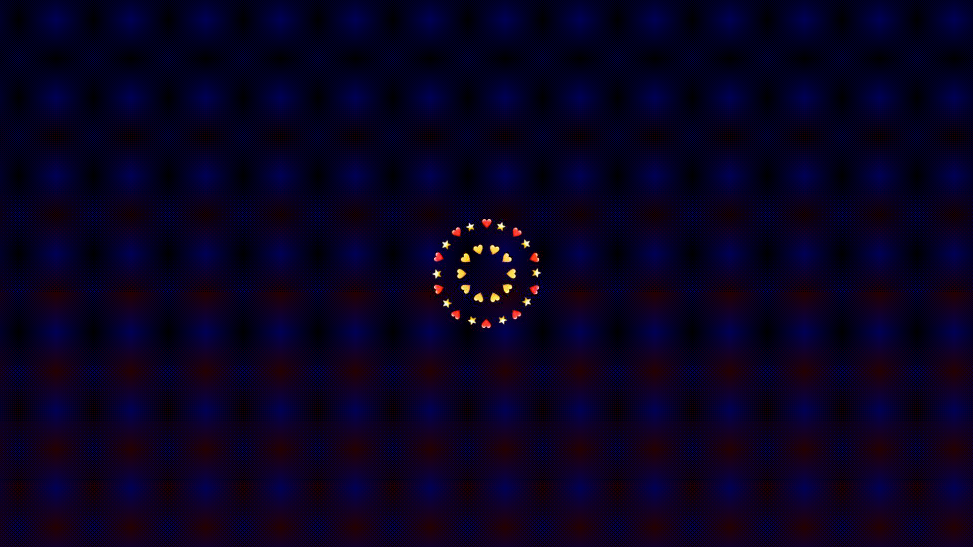 To make the animation more exciting, let's add some stars and hearts in different colors. To do this, we need to basically repeat the previous steps. Besides the <Dots>